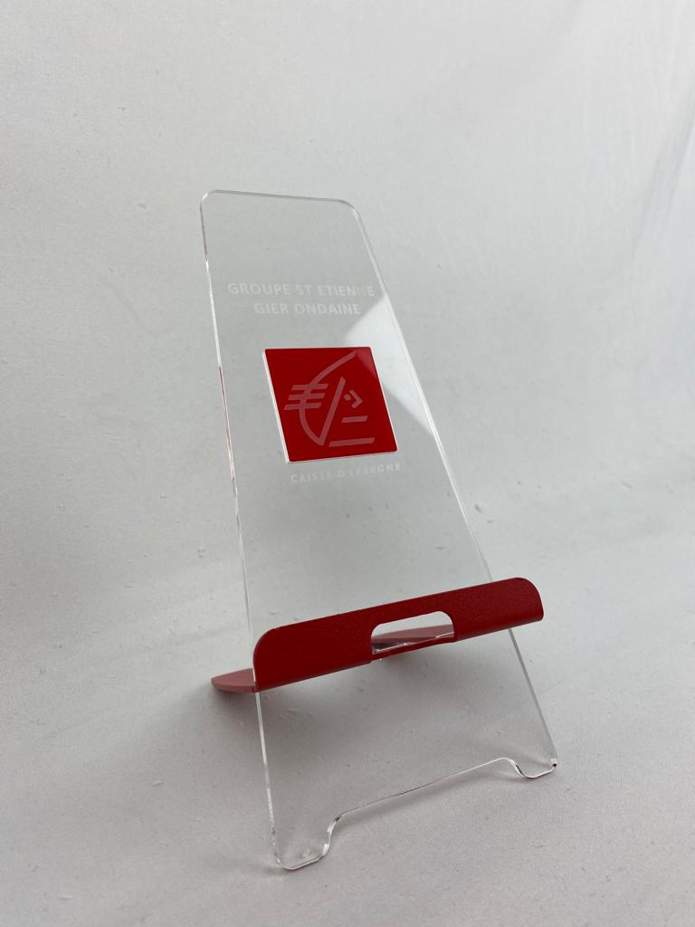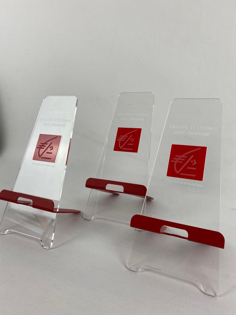 Pour la Caisse d’Épargne, nous avons confectionné des supports téléphones qui ont été remis aux collaborateurs.